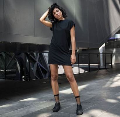 Deze nonchalante basic is de perfecte combinatie van een T-shirt en een jurk: de katoenen stof en de aangeknipte schouders zorgen ervoor dat het soepel valt. De kleine opstaande kraag en de oprolbare mouwen maken de stijlvolle look af. Perfect voor zeefdruk en flexdruk.