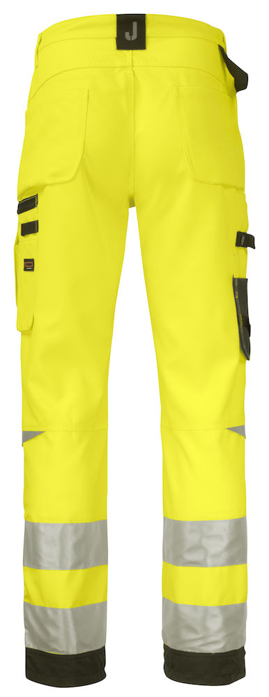 Technische Hi-Vis servicebroek gemaakt van hoogwaardige STAR kwailteit, met zeer slijtvaste, sneldrogende eigenschappen en een zachte binnenzijde. De broek is voorzien van diverse zakken zoals ruime steekzakken aan de voorzijde, verstevigde achterzakken, een duimstokzak met mes-bevestigingsknoop en een zak op het been met telefoonvakje, ruimte voor een ID-kaart en meerdere compartimenten. De broek is professioneel afgewerkt met een hamerlus, extra riemlussen bij de grootste maten en polyamide verstevigde omslag van de broekspijpen. Gecertificeerd volgens EN 14404:2004+A1:2010 Type 2 Level 1 in combinatie met