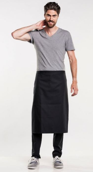 kent een simpel en minimalistisch ontwerp en is daardoor erg prettig in het gebruik. Het ingeweven satijnstreepje in de stof zorgt voor een glanzende, chique uitstraling. Het is een halflang model dat je aan de bovenkant vast kunt knopen. Dankzij de egale kleur past de Apron Santino Black bij iedere