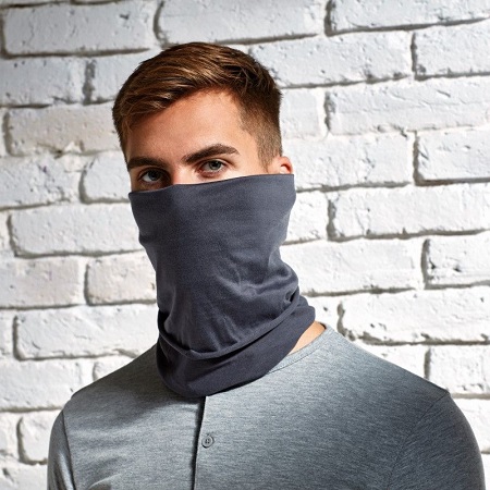 Wasbare en herbruikbare snood-gezichtsbedekking, een licht, comfortabel en ademend alternatief voor een niet-medisch masker. Naadloze sneldrogende stof, die wordt bevestigd door de stof over het gezicht te trekken en dubbel te vouwen voor een nauwsluitende pasvorm, met een duurzame waterafstotende afwerking van hernieuwbare oorsprong uit Zelan™ R3 / Teflon EcoElite™.