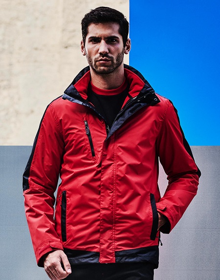 Product details 115 g/m² 100% polyester (stretch softshell stof met warme rug) Waterdicht en ademend Isotex 10.000 gecoat Verborgen capuchon met verestellers Waterdichte borstzak met ritssluiting Zijzakken met ritssluiting Getapete naden Voldoet aan EN343 klasse 3: 2 Verborgen rits in voering voor borduren.