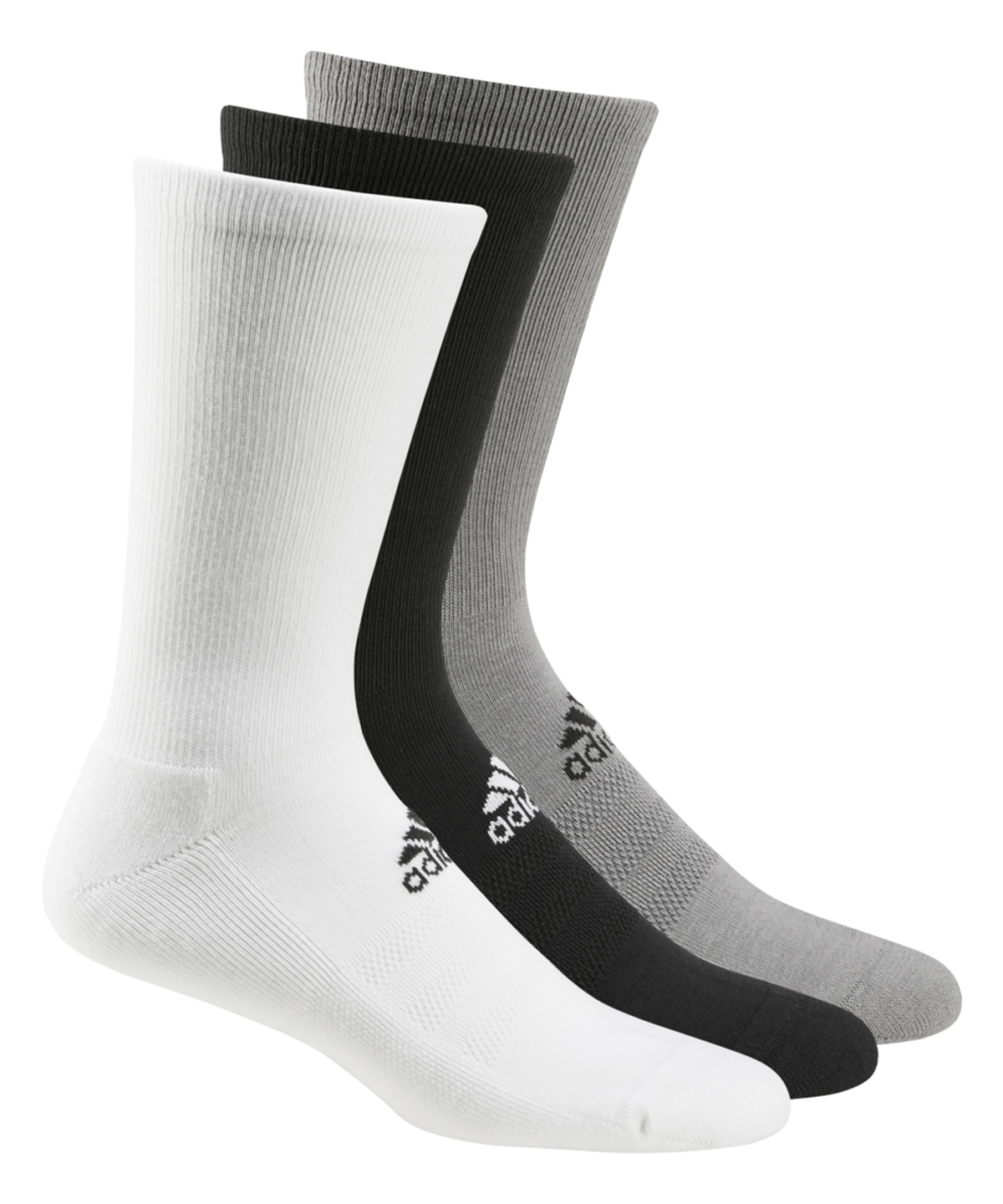 This golf sock will give you great comfort and support during your round. Clean adidas branding gives them a sporty look. Crew length soft and durable construction. Supportive mid-foot compression. Made with Primegreen materials.