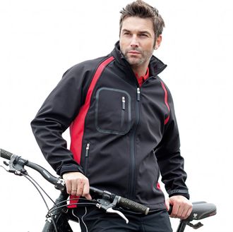 - 3-laagse softshell met trechterhals en contrasterend zijsegment