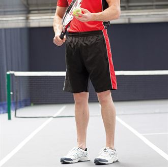 Product details Panelled piping. Elasticated waist with mesh inner and zipped pockets. Zipped pockets.