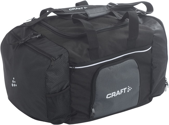 Middelgrote trainingstas met veel vakken en zakken. Afmeting: 53x32x26cm.