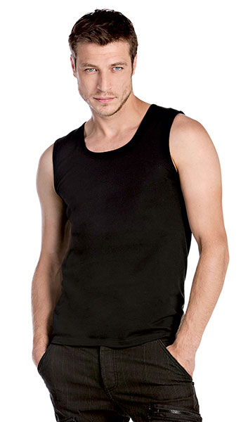 Hals en armuitsnede met smalle ingezette boordjes, rond gebreid model, dubbeldraads gestikt bij onderboord