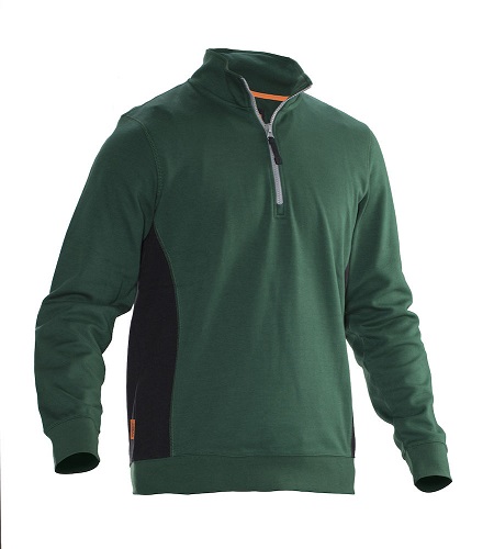 Praktische polyester/katoen trui met hoge kraag voorzien van een halve rits en een hoogwaardige afwerking van rib bij de manchetten en boord. De trui heeft een opvallende en unieke uitstraling door de contrasterende zijpanelen. De trui blijft lang mooi, ook bij intensief wassen. De trui is leverbaar in maar liefst 8 commerciële duo kleuren die mooi aansluiten op alle artikelen uit de JOBMAN Practical lijn. 80% katoen, 20% polyester.
