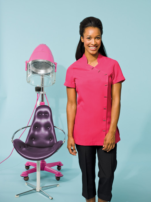 Schoonheid en Spa tuniek met Mandarin kraag.