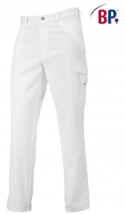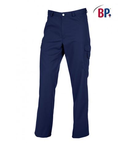 jeansmodel, 2 steekzakken opzij, 2 achterzakken, 2 beenvakken met klepsluiting waarvan 1 met GSM-vak en 1 met opgezet pennenvak, verstelbaar elastiek in het rugpand