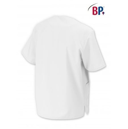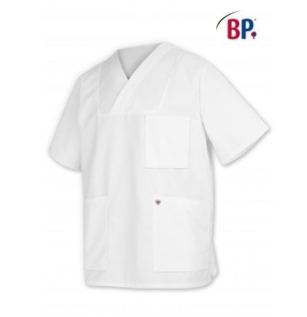 1/2 mouw, gekruiste V-hals met 1 drukknoop, 1 borstzak, 2 zijzakken, zijsplitten.