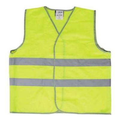 Kwaliteit: 100% polyester tricot, 120 gr/m². Dubbele klittenbandsluiting. V-hals. Kleur: fluo geel.