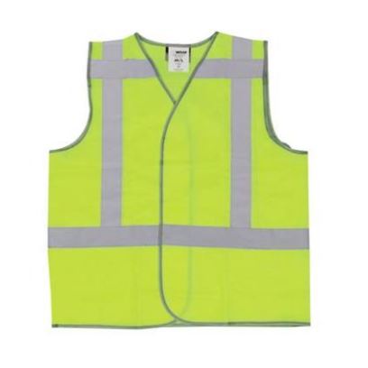 Kwaliteit: 100% polyester tricot, 120 gr/m². Dubbele klittenbandsluiting. V-hals. Kleur: fluo geel.
