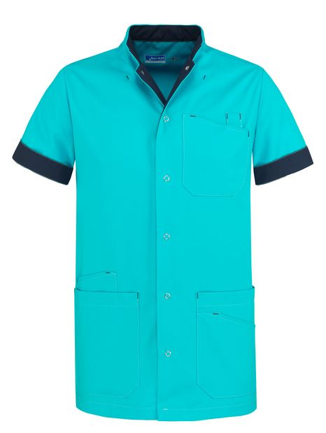 kleurafzettingen aan binnenzijde van boord, mouwen en zijsplitten. Kleur: Turkoois