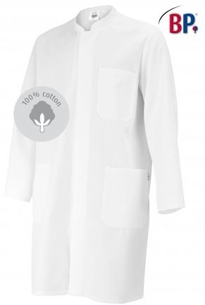 Lange mouw, opstande kraag, blinde drukknopenlijst, 1 borstzak, 2 zijzakken, split in het rugpand