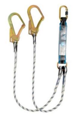 Deze energie absorberende kernmantel vanglijn bestaat uit een schokdemper in 44 mm brede band, die het effect van de daling tot minder dan 6 kN vermindert, twee 12 mm (diameter) polyamide kernmantellijnen, een stalen karabijnhaak met automatische vergrendeling (opening 18 mm) en twee stalen steigerhaken met automatische vergrendeling (opening 50,8 mm). Ogen zijn beschermd door een slijtvaste vingerhoed. De aanhechting van de lijn is beveiligd met een sterke transparante dekkingskoker die het einde beschermt, wat de steken zichtbaar maakt voor eenvoudige inspectie. Lengte: 1,5 meter.