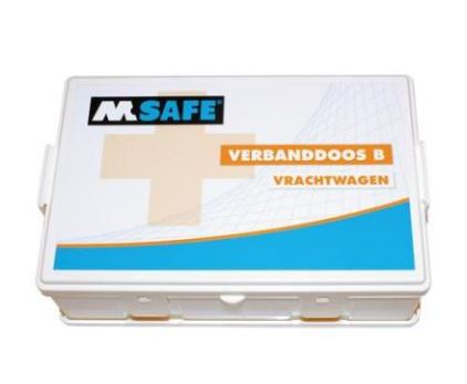 De M-Safe vrachtwagen verbanddoos B is een EHBO-doos speciaal ontwikkeld voor onderweg en uitermate geschikt voor gebruik in vrachtwagens en andere bedrijfswagens. De inhoud bevat specifieke (steriele) benodigdheden voor in de auto.