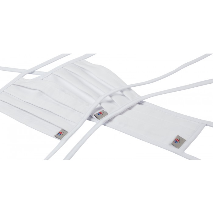 BP® Mond-en neusmasker van dubbel laags katoen voorzien van koordjes (deze kunnen eenafwijkende kleur hebben). Ditmasker is geen medisch product noch een persoonlijk beschermingsmiddel (PBM) endaarom is dit masker niet bedoelt om te gebruiken als medisch hulpmiddel, als