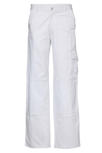 Product details Werkbroek met vast elastiek in de rugband, riemlussen, gulpsluiting met rits, dijbeenzak met extra zakje, duimstokzak, kniezakken, twee achterzakken