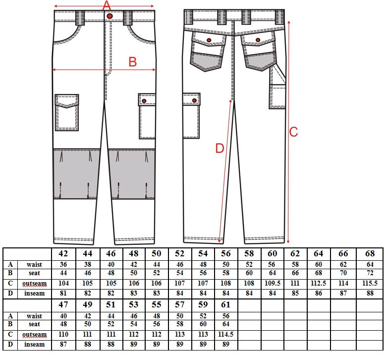Maten: 42-66(68,70) (alleen kleuren marine en zwart verkrijgbaar in de maat 68, kleur zwart gaat t/m maat 70)