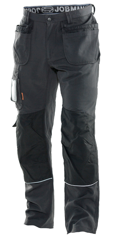 Functionele, sneldrogende werkbroek. De broek is voorzien van een divers aantal zakken zoals ruime holsterzakken, verstevigde achterzakken, een duimstokzak met mes-bevestigingsknoop en een zak op het been, telefoonvak en ruimte voor een ID-kaart. Verder is de broek professioneel afgewerkt met een hamerlus, extra riemlussen bij de grootste maten en reflecterende biezen. De broek is verkrijgbaar in 3 commerciële kleuren die mooi aansluiten op alle kleding in de JOBMAN collectie.