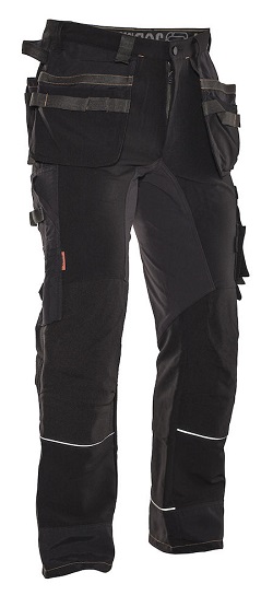 Geavanceerde broek in een zeer hoogwaardige en comfortabele stretch kwaliteit gecombineerd met polyamide en Cordura® versteviging voor extra duurzaamheid. De broek is voorzien van diverse zakken zoals een duimstokzak met mes-bevestigingsknoop, ruime verstevigde holsterzakken, deels loshangende achterzakken en een zak op het been met rits, telefoonvakje en ruimte voor een ID-kaart. Verder is de broek professioneel afgewerkt met een hamerlus, subtiele JOBMAN branding en reflecterend tape.